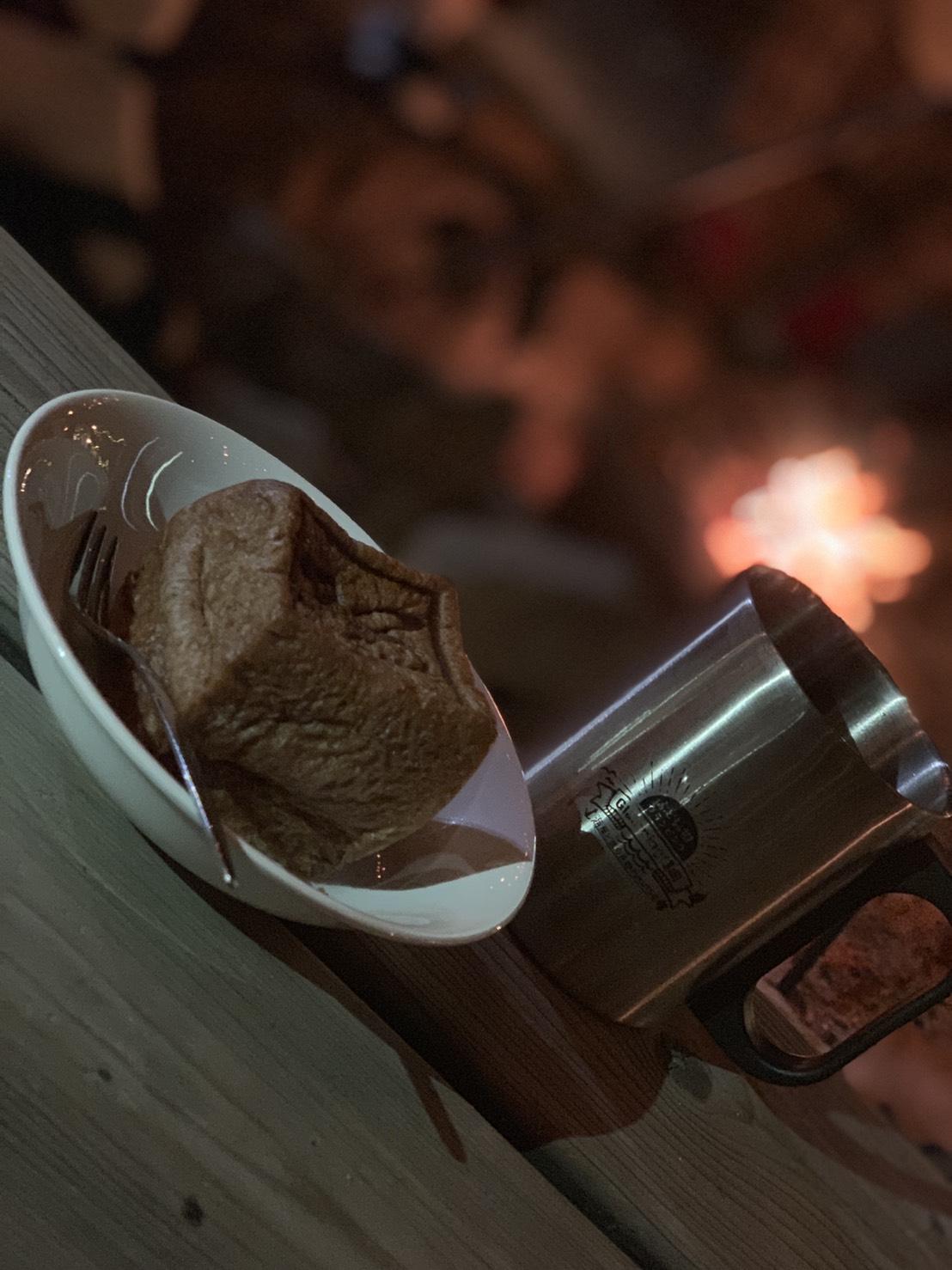 宿泊所の管理者のかたが、歩いてこられてチョコが練りこまれたパンとマシュマロ、さらにはホットワインを振る舞ってくださいました。
