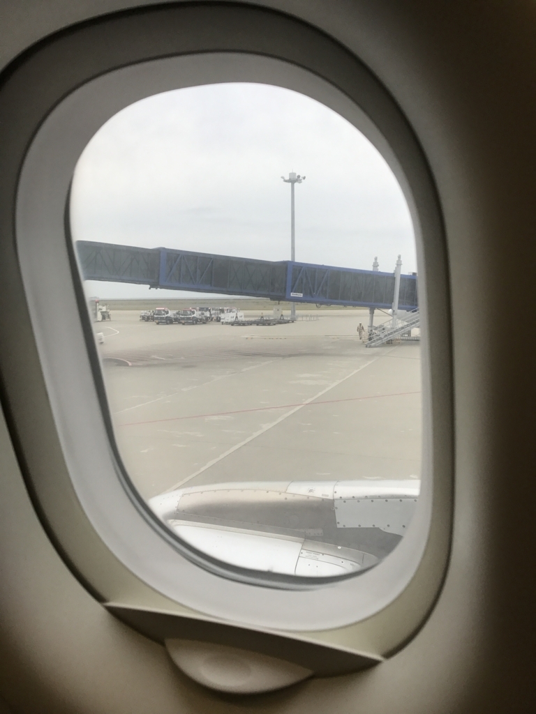 行きの名古屋からの飛行機は非常口前の席が選べましたので、そちらにしていただきました。