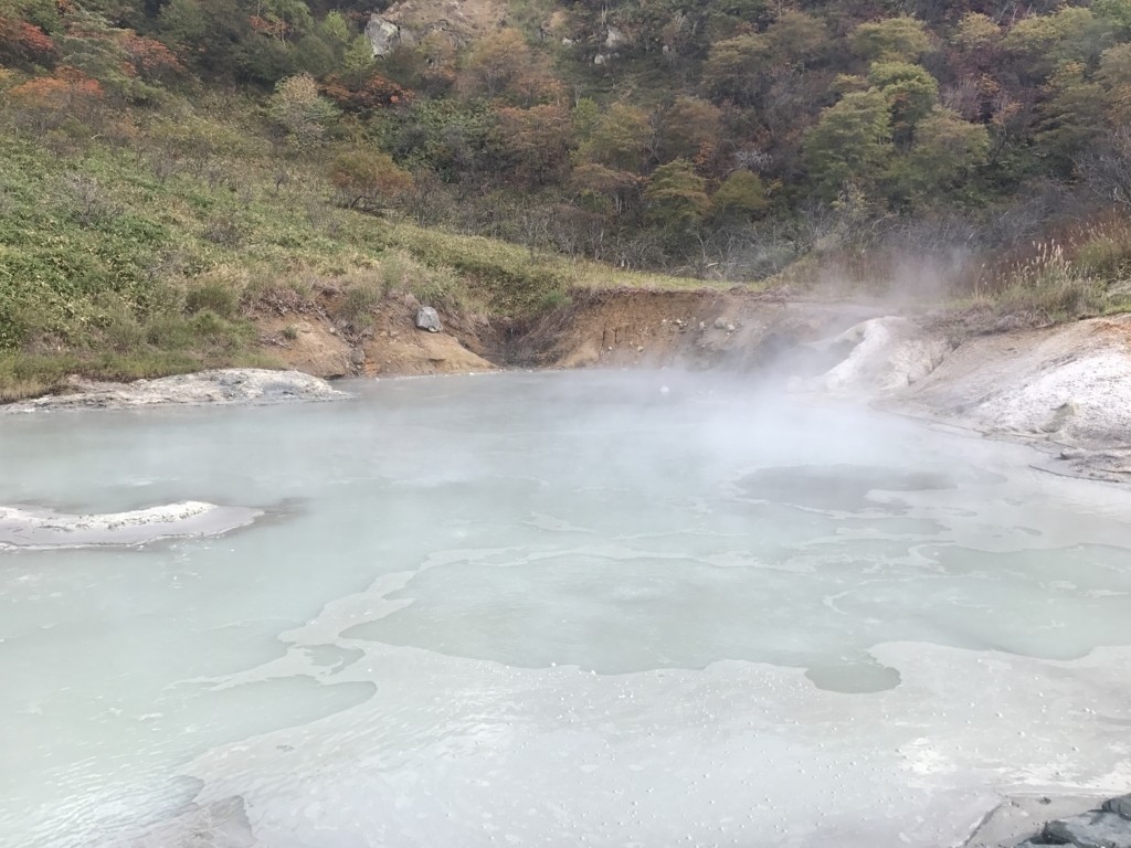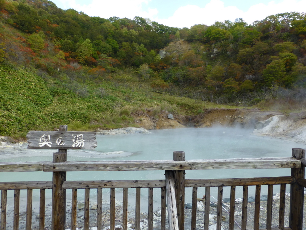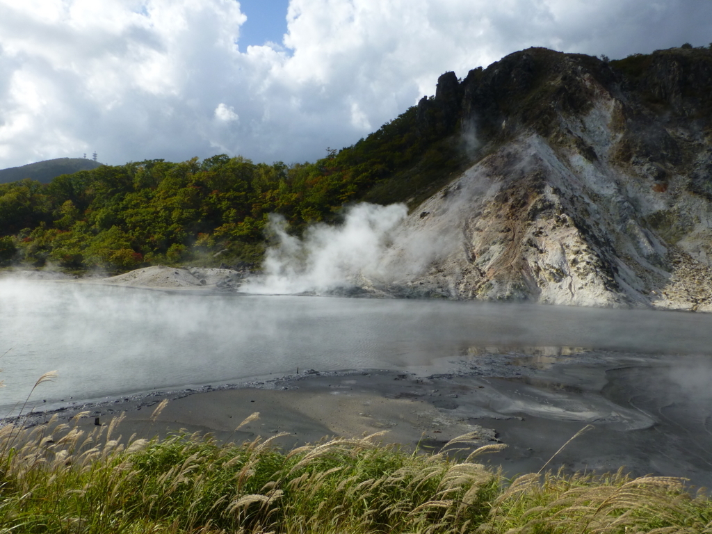 大湯沼は活火山である日和山の横にある沼です。