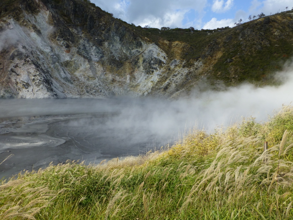 地獄谷はクッタラ火山の噴火活動によりできた爆裂火口跡です。