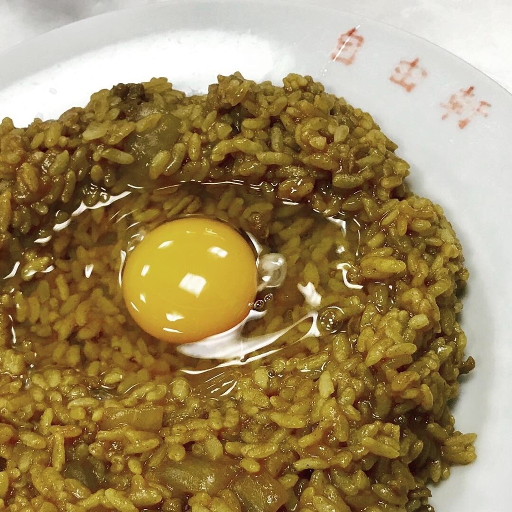 生卵が載った「名物カレー」