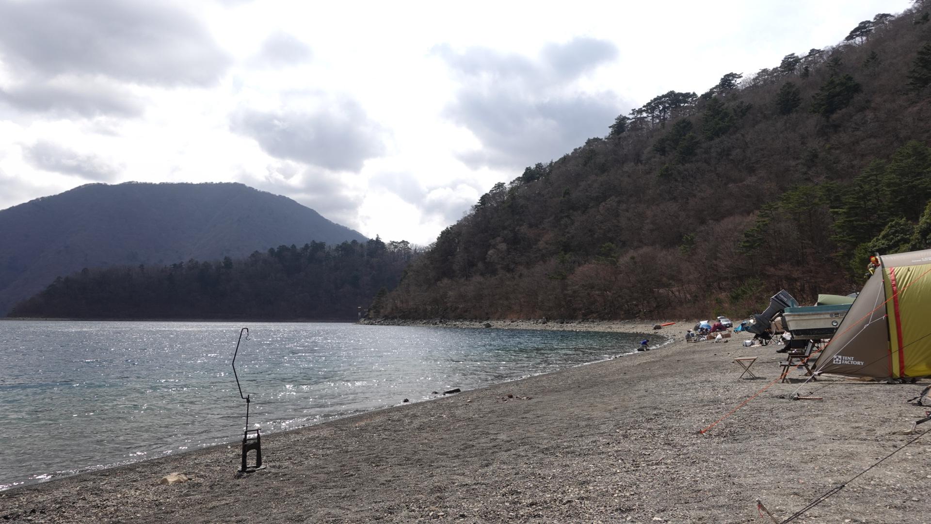 湖畔の方のキャンプ場内は大体3列に分かれていて私は1番湖側に設営しました。真ん中は傾斜が結構あります。一番後ろの方は傾斜もあまりないですがやはり眺めがイマイチかなと思いました。