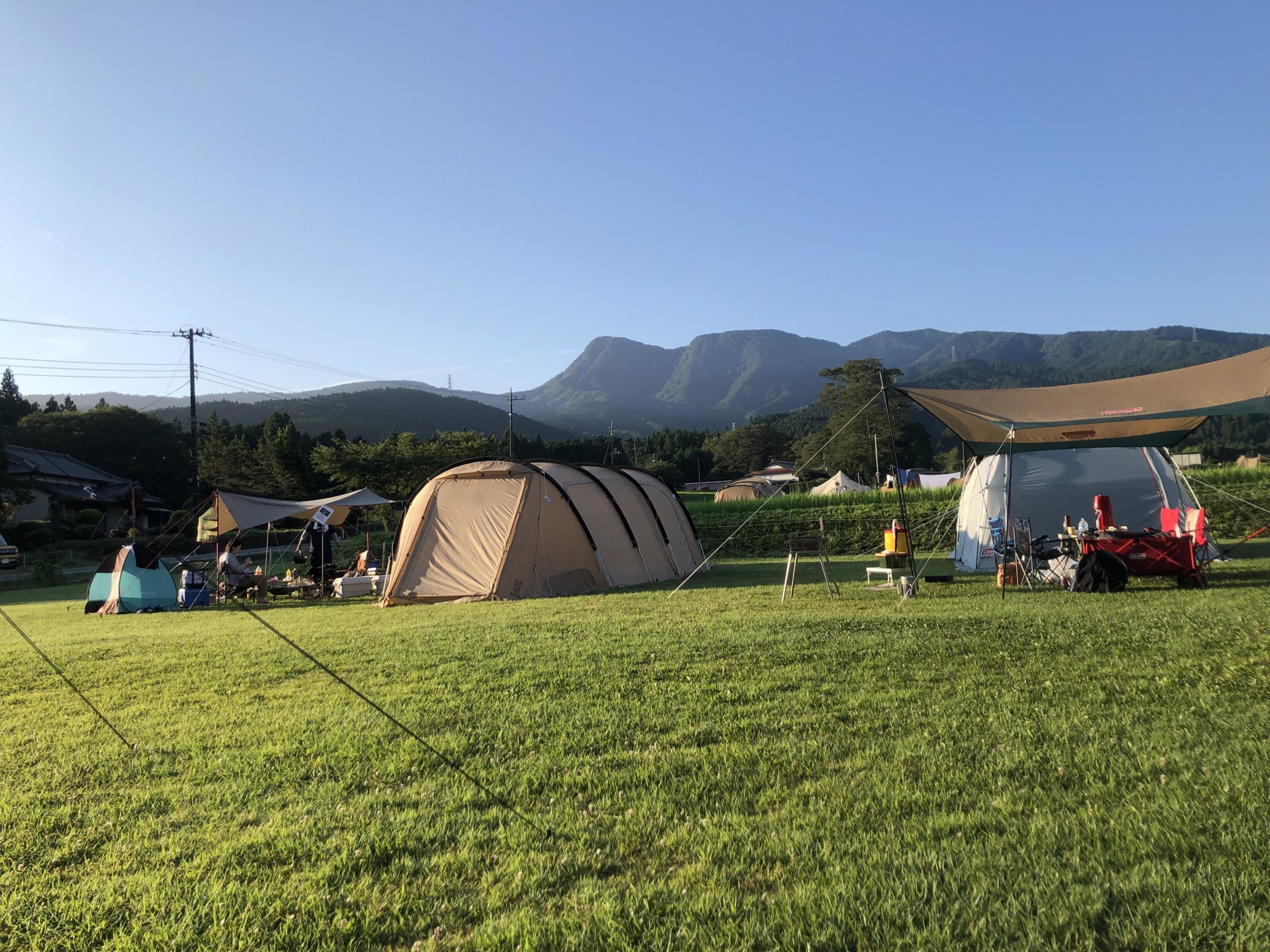 木々や川などは近くにないので、自然の中で探索を思い切り楽しみたい!という方には少し物足りないかもしれません。しかし、芝生にはバッタがいたりトンボがいたりするので、身近な自然に触れるには十分です。何より、見晴らしの良い芝生サイトは、森林や川沿いのサイトに比べて小さなお子様連れには危険が少なく、安心して過ごせるかと思います。