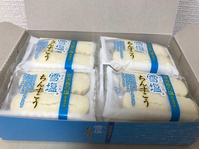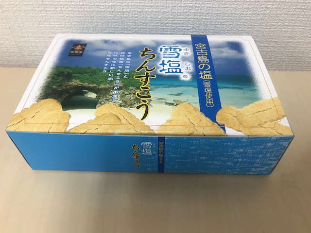 こちらは雪塩ちんすこう。宮古島で生産されている雪塩を使ったちんすこうで沖縄では定番で人気のお土産ですね。