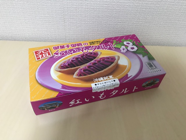 沖縄のお土産の定番中の定番、お菓子御殿の元祖紅いもタルトです。