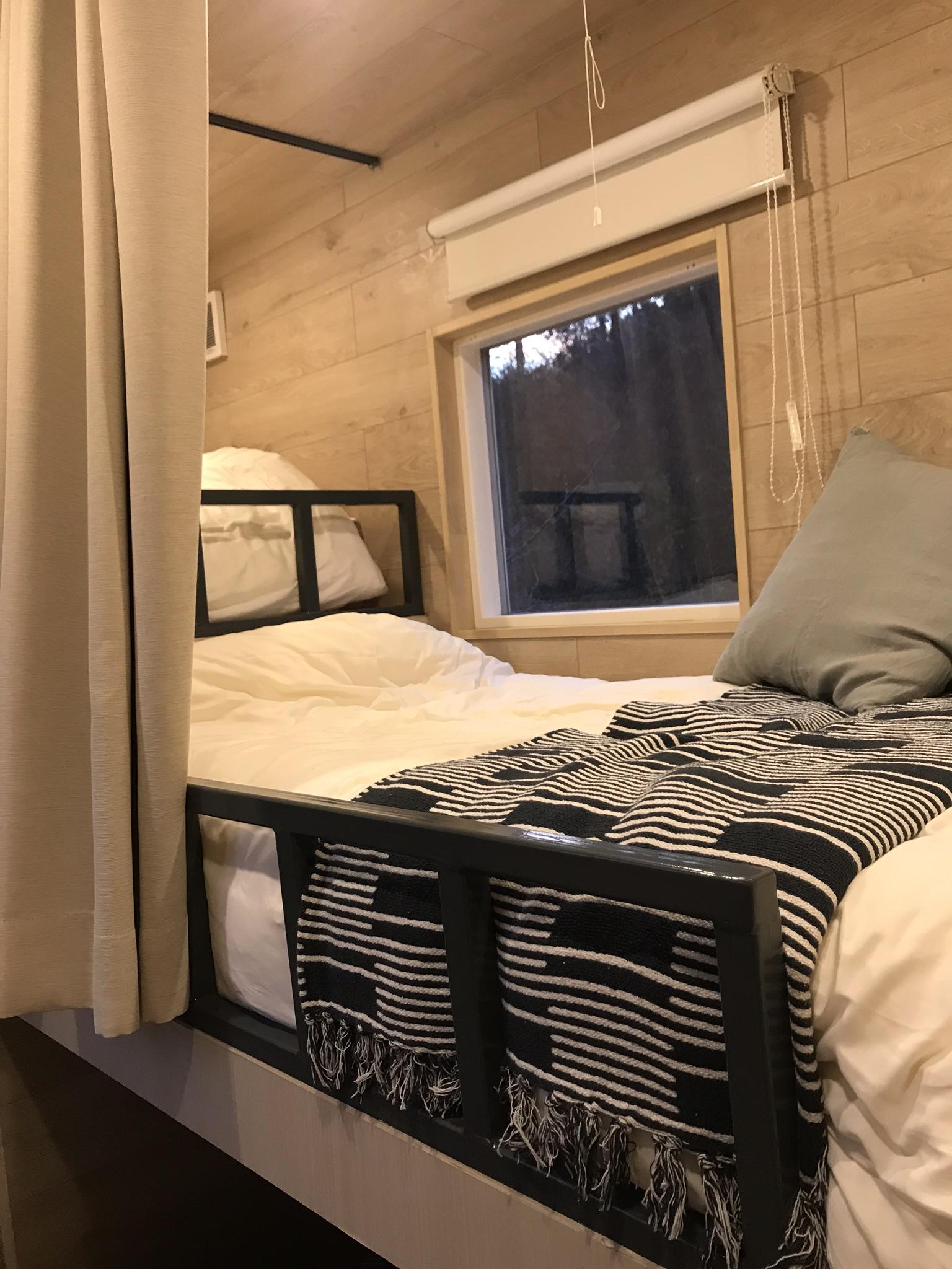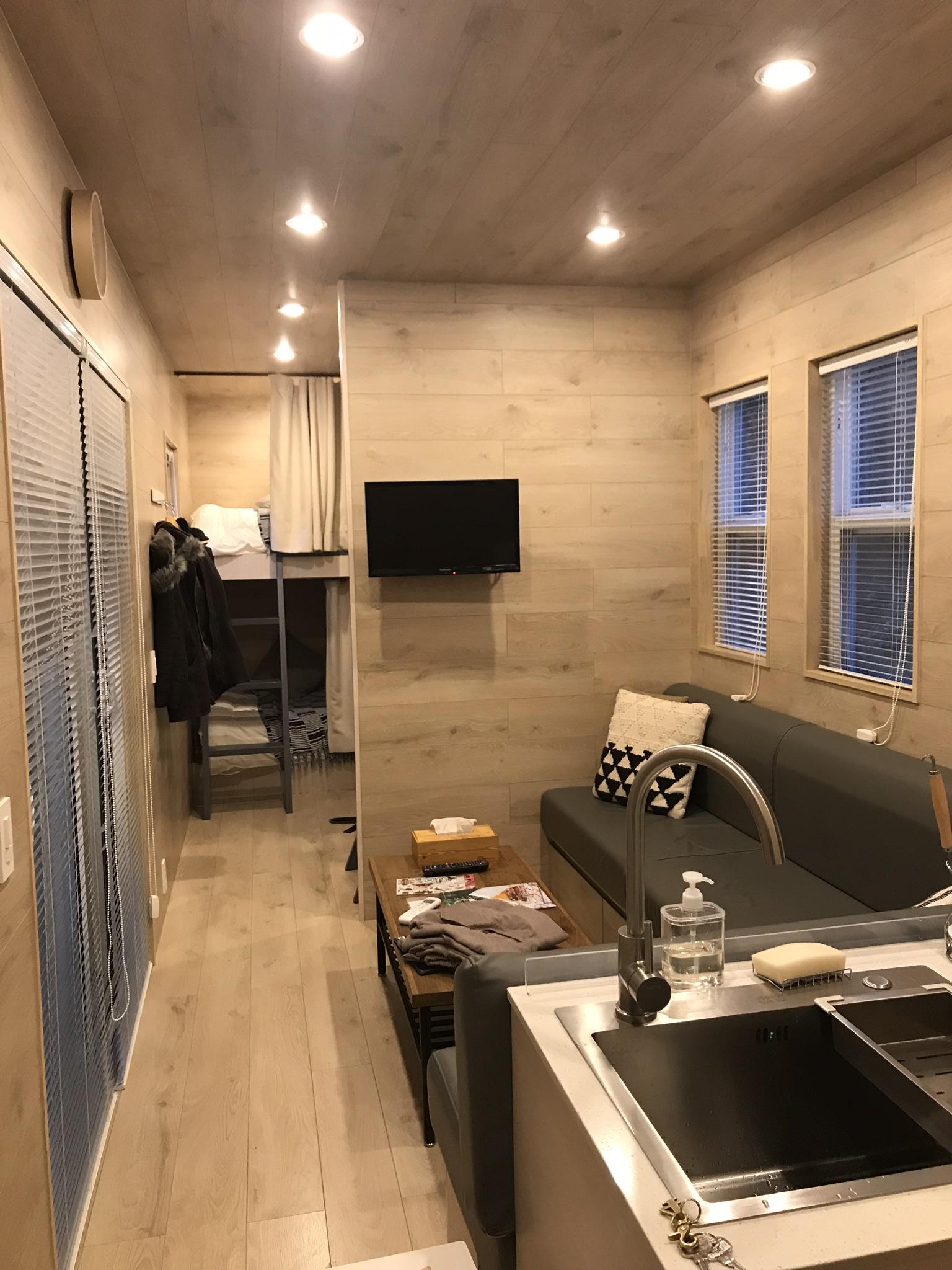 お部屋の中の写真は見ていただければと思うのですが、2段式ベッドが完備されているほか、セミダブルベッドのある小部屋もあり、少しお仕事をするのに困るのにも困らないので、便利だなと思いました。