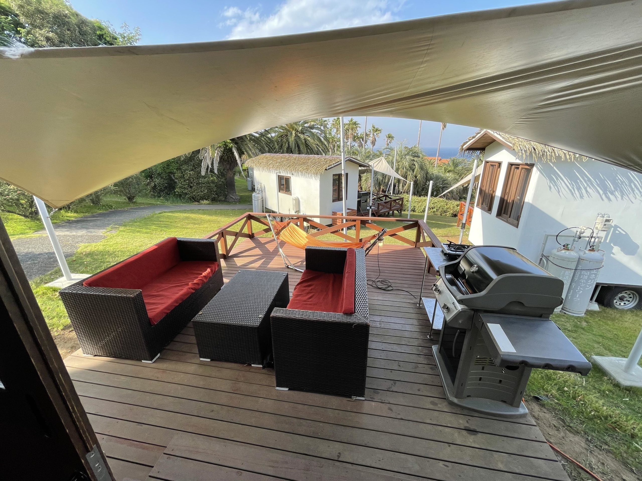 グランピングの施設自体もとてもよくて、外にはハンモックとBBQセット、室内はベットに机、サファー、冷蔵庫、エアコンが備え付けられていました。