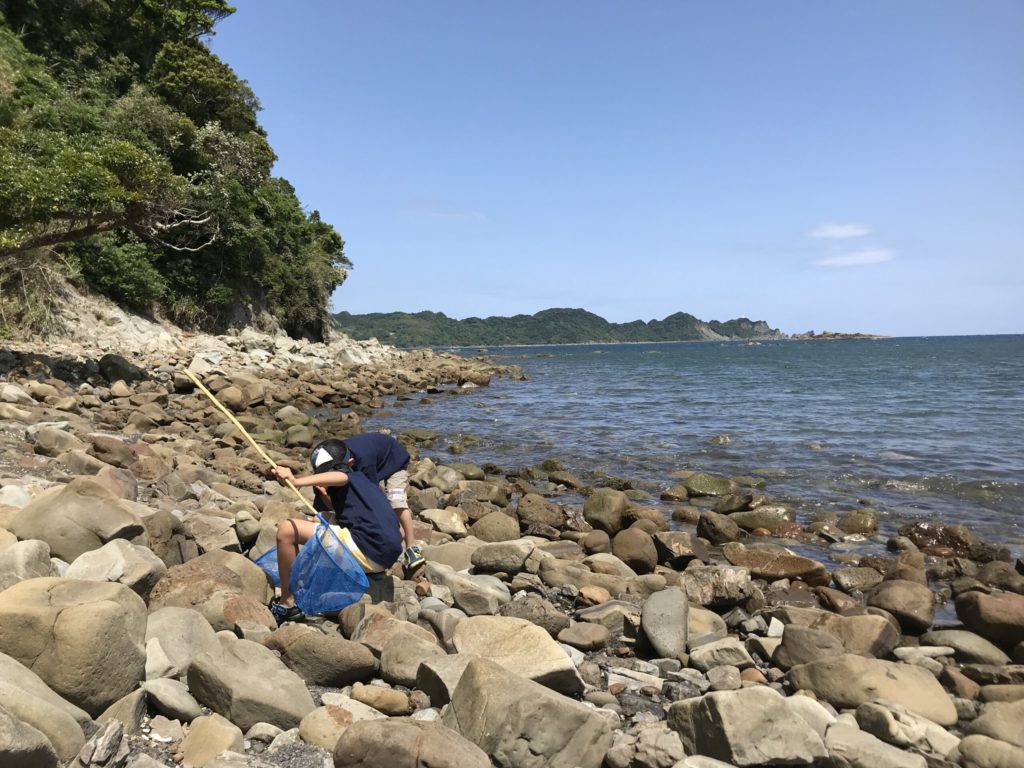 テントサイトの目の前はサーフですが、両サイドは磯になっていて磯遊びもできます。
