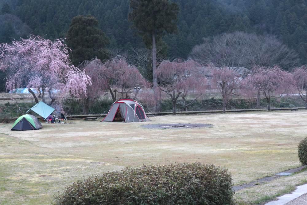 たけくらべ広場は、春はキャンプ場内に桜の花が綺麗に咲き誇り、夏には川で水遊びができる自然を満喫できるおすすめのキャンプ場です。